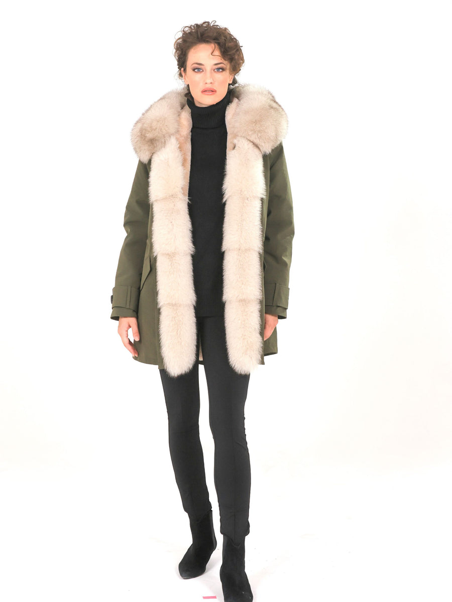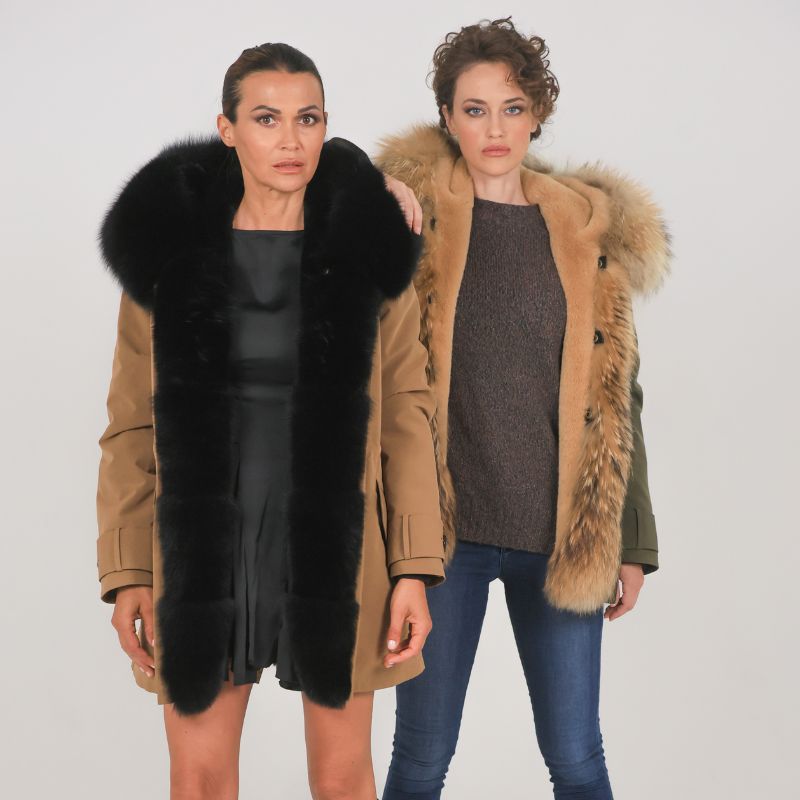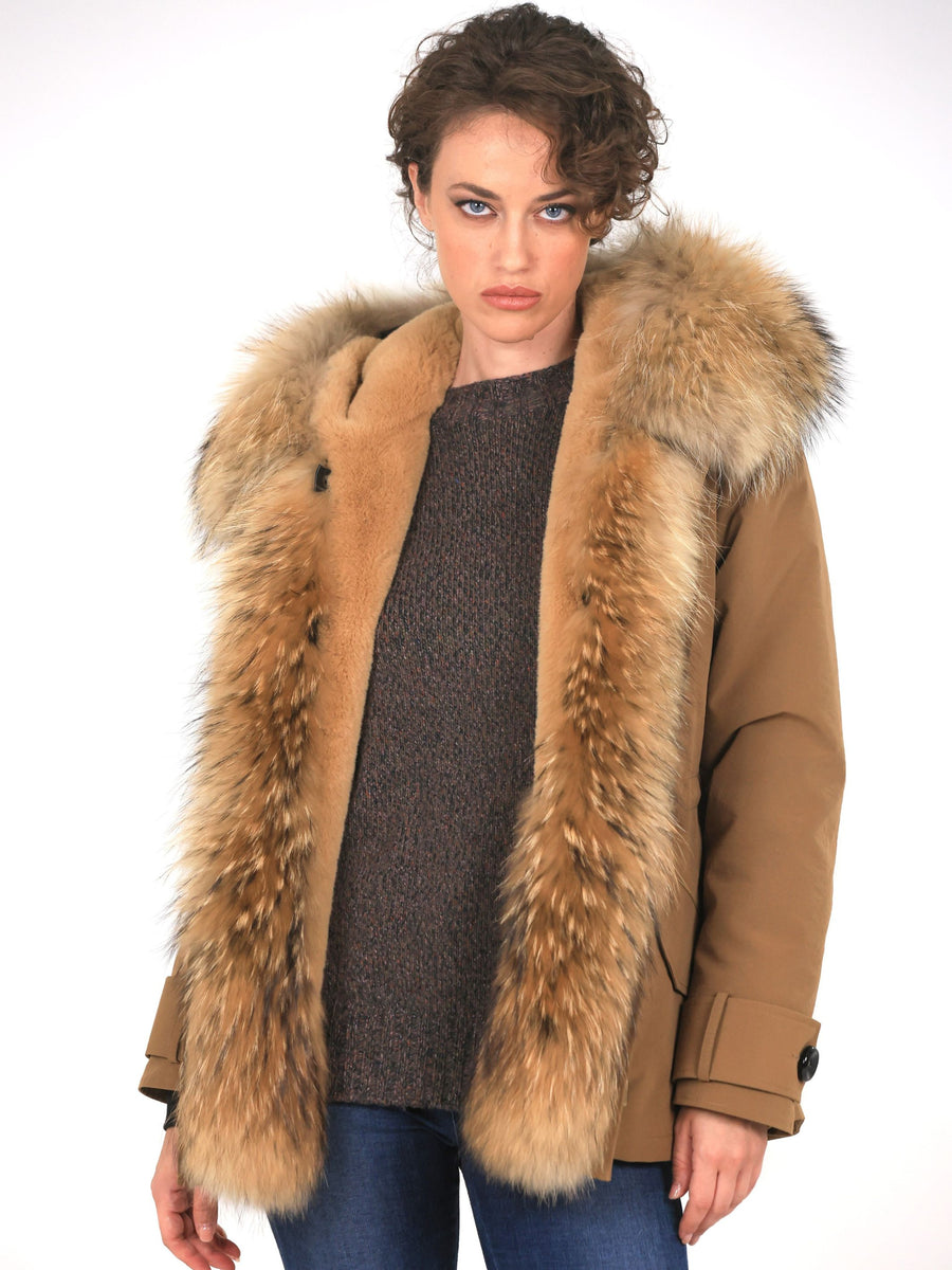Parka Elegant BEIGE con Collo Alto e Gilet in pelliccia Removibile