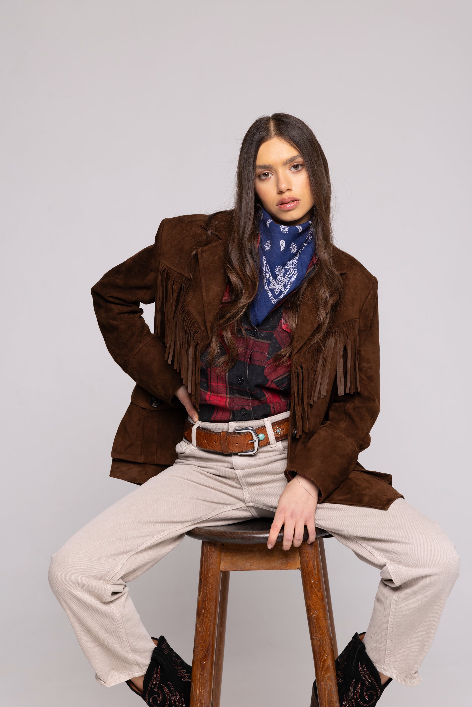 Fringe Jacket in Suede – Brown