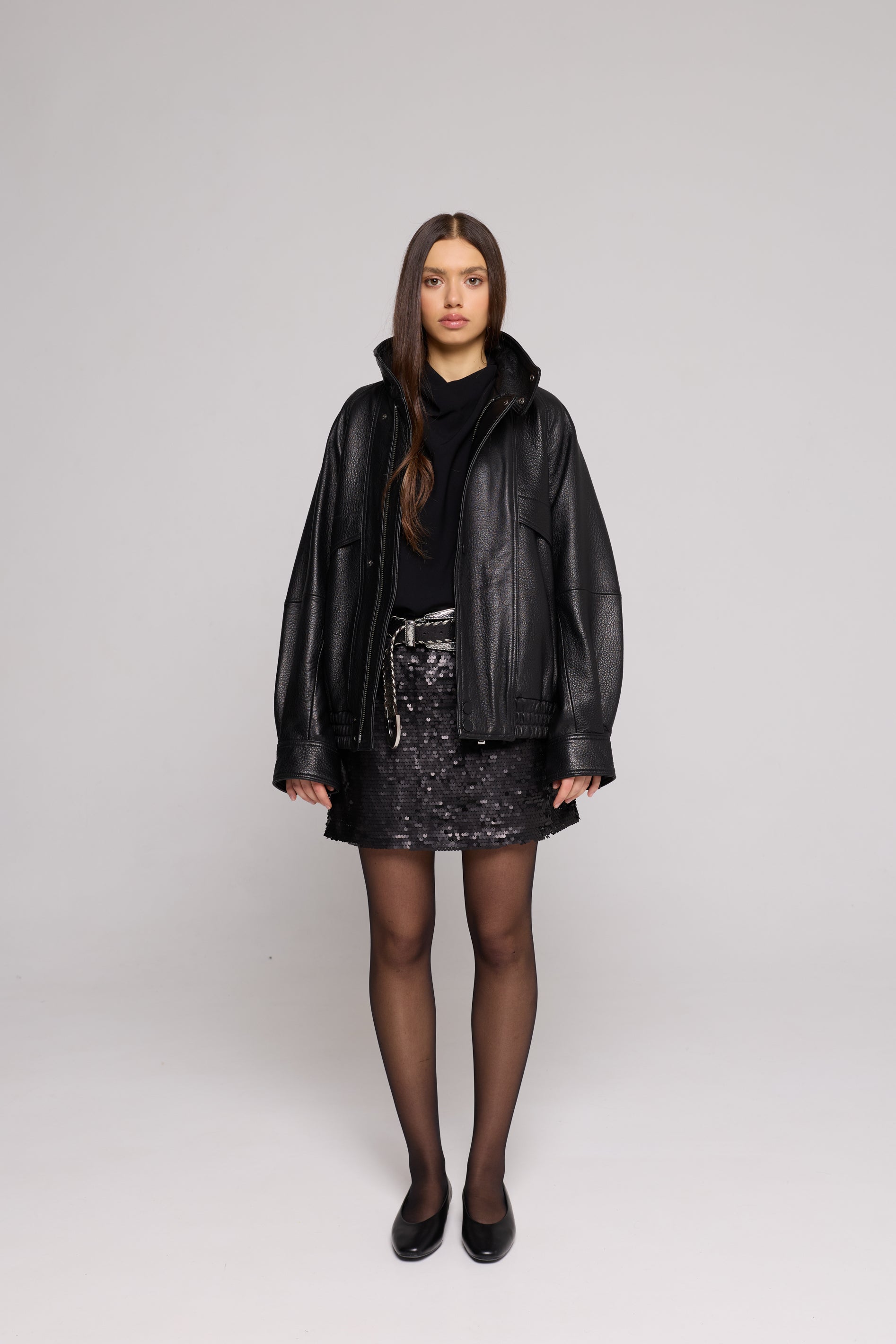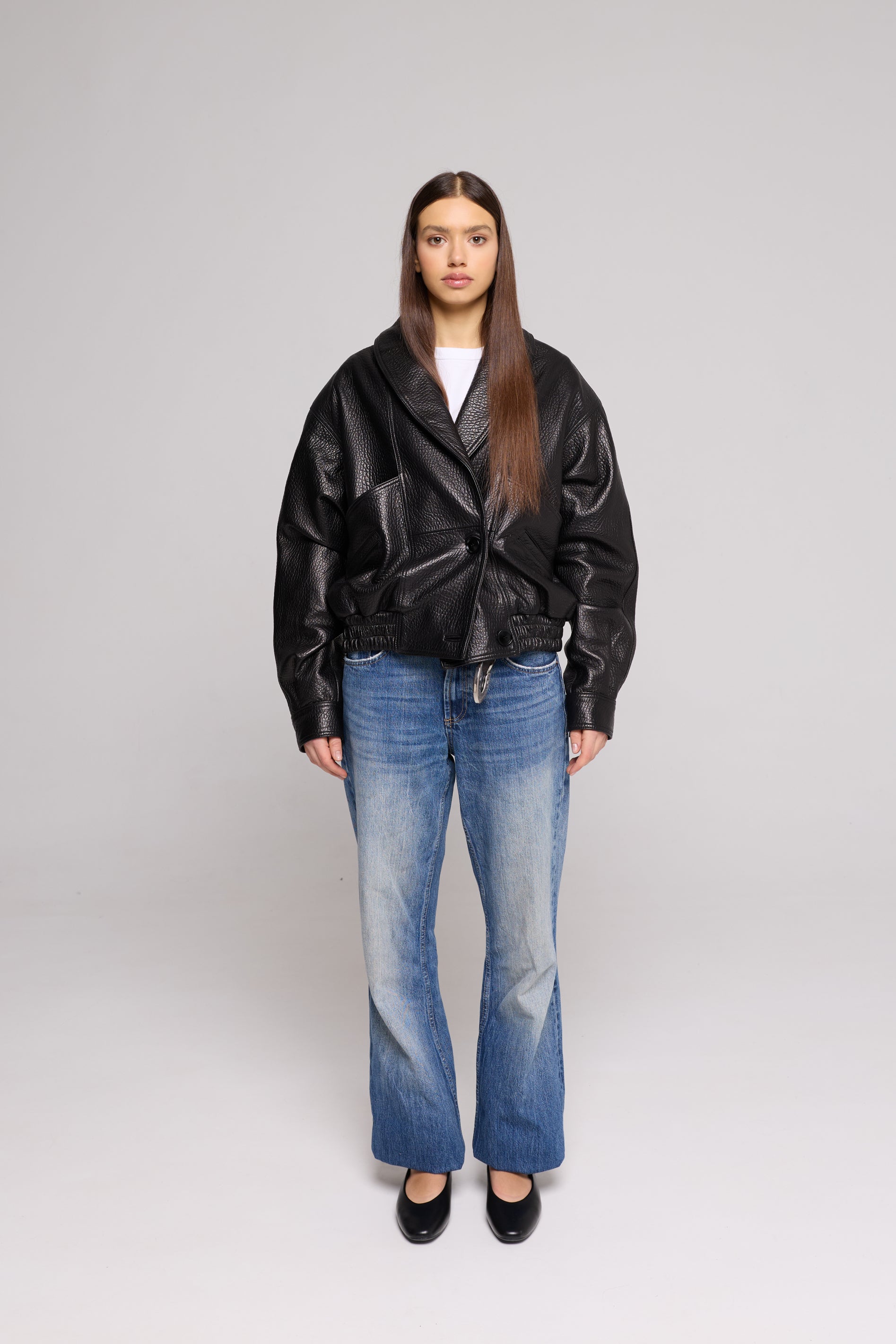 Bomber Over in Vera Pelle Martellata Black