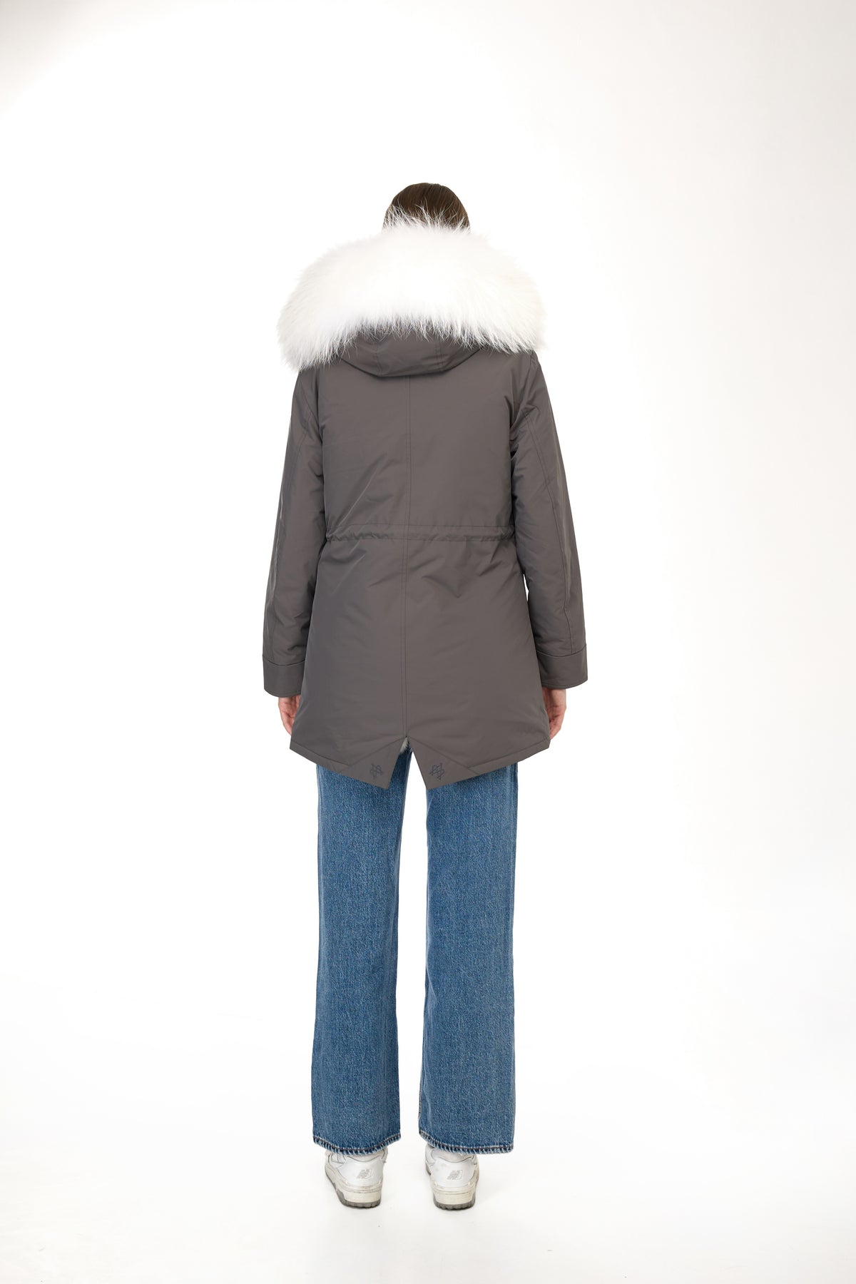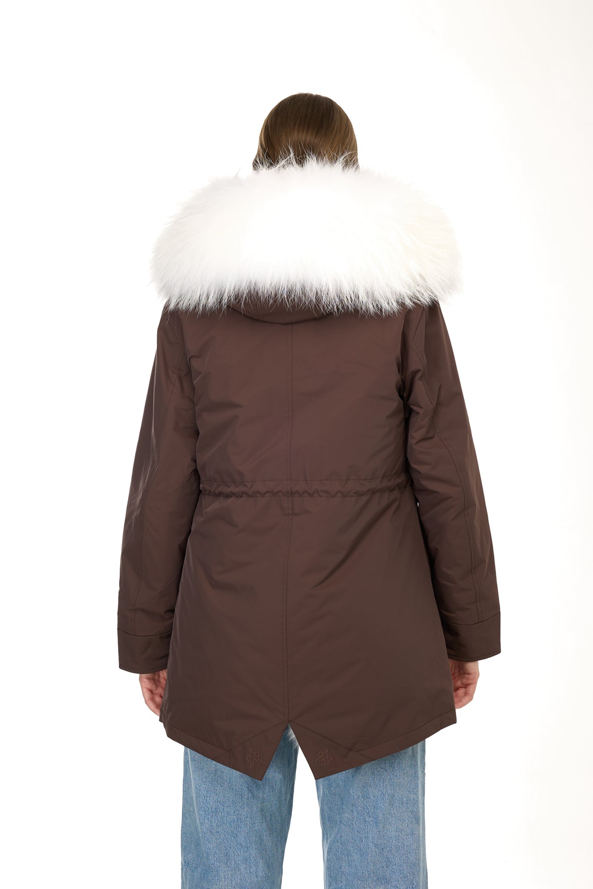 Parka long Urban WHITE in Misto Cotone Impermeabile con Gilet in Coyote