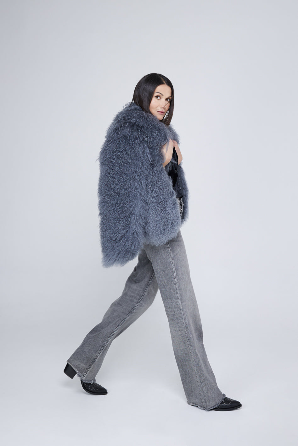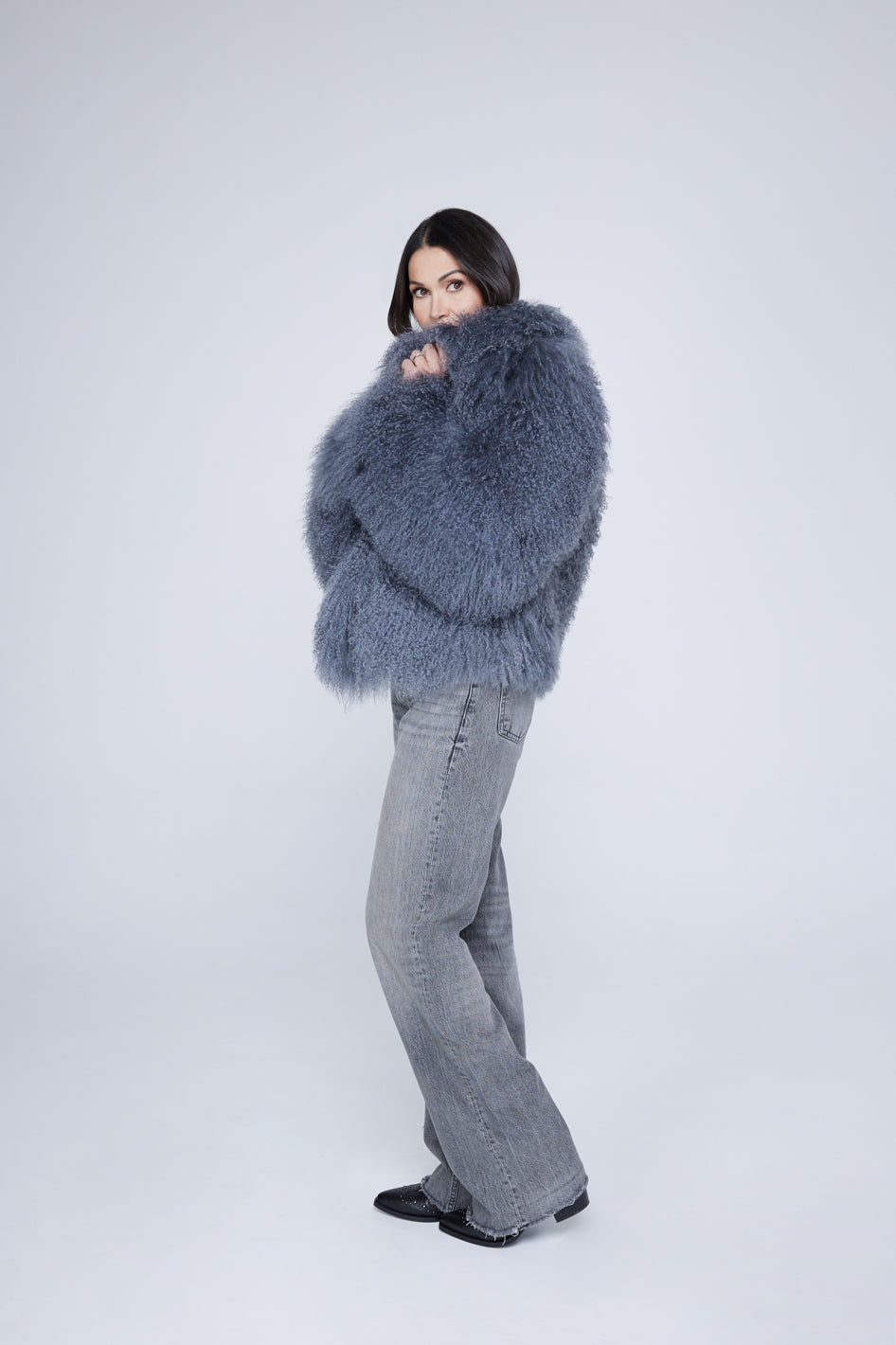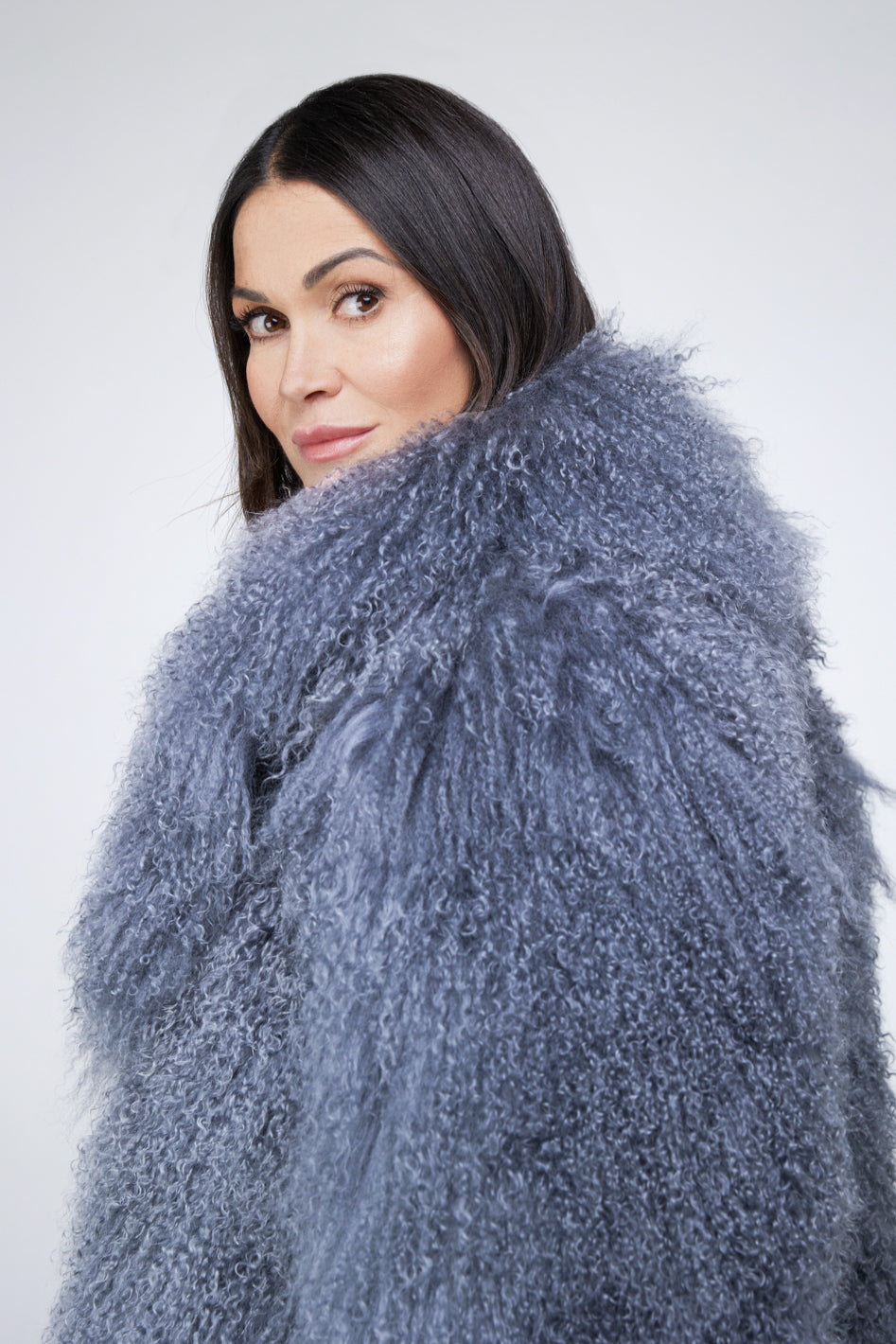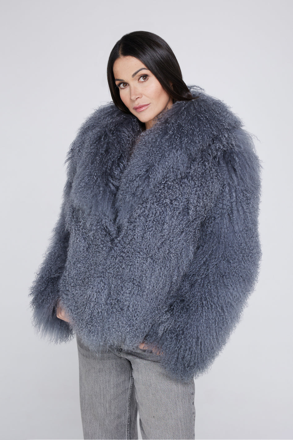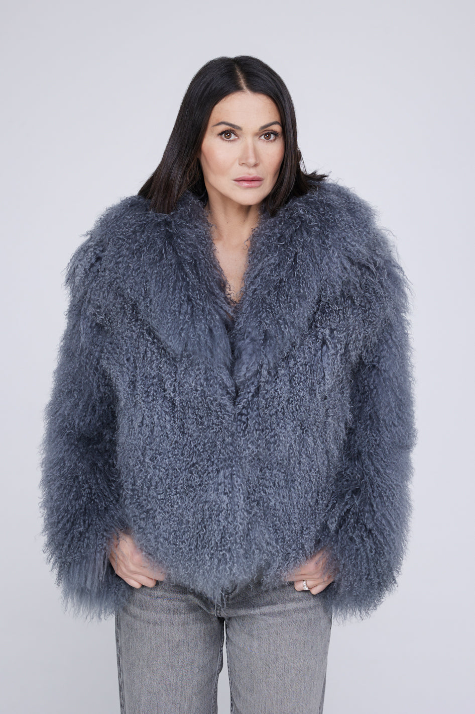 Made with the Made from the finest Mongolian wool, this coat makes a statement wherever you go. The natural curly finish and hidden closures make this jacket as chic as it is cozy.