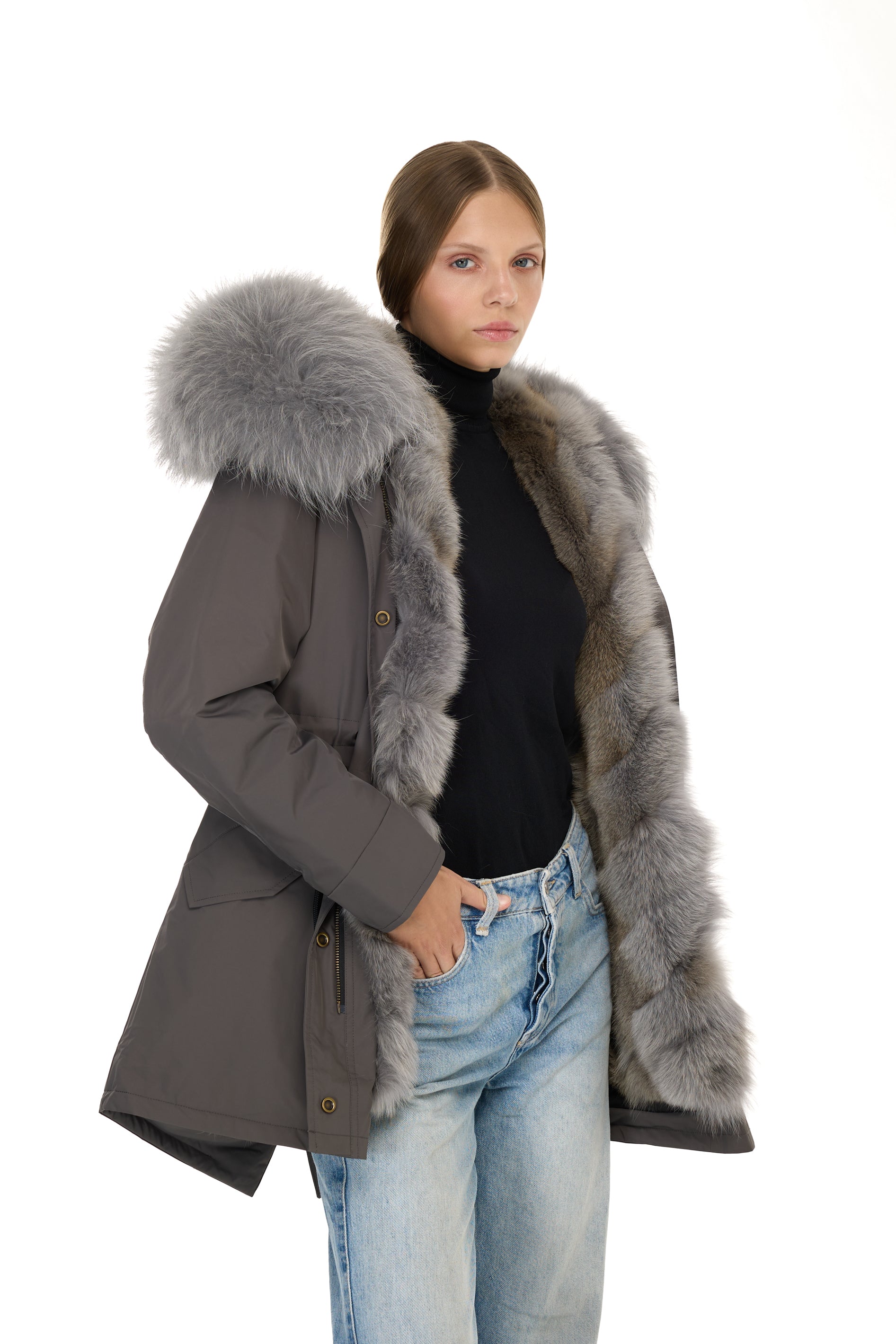 Inner lining: Real coyote fur, removable