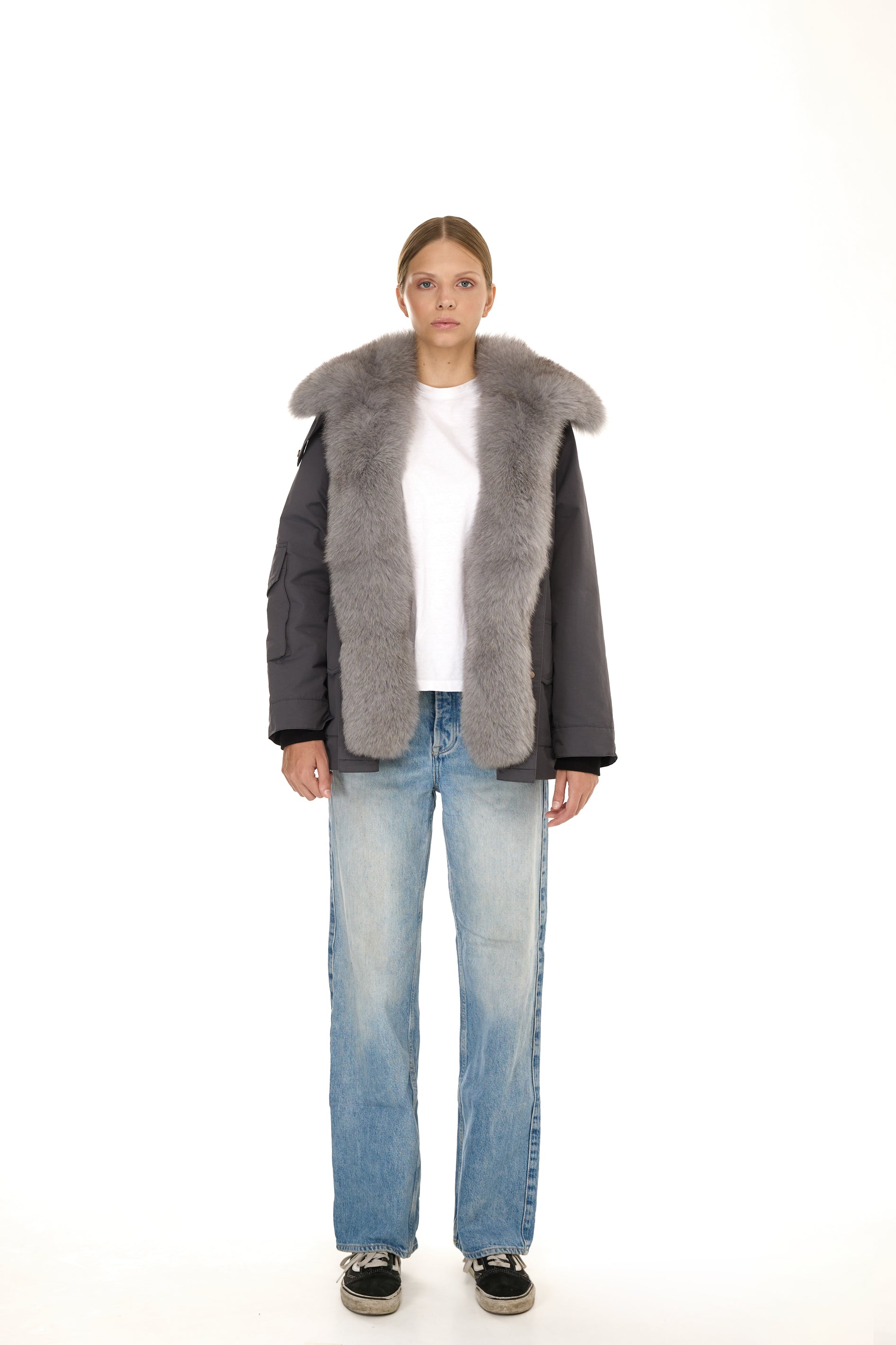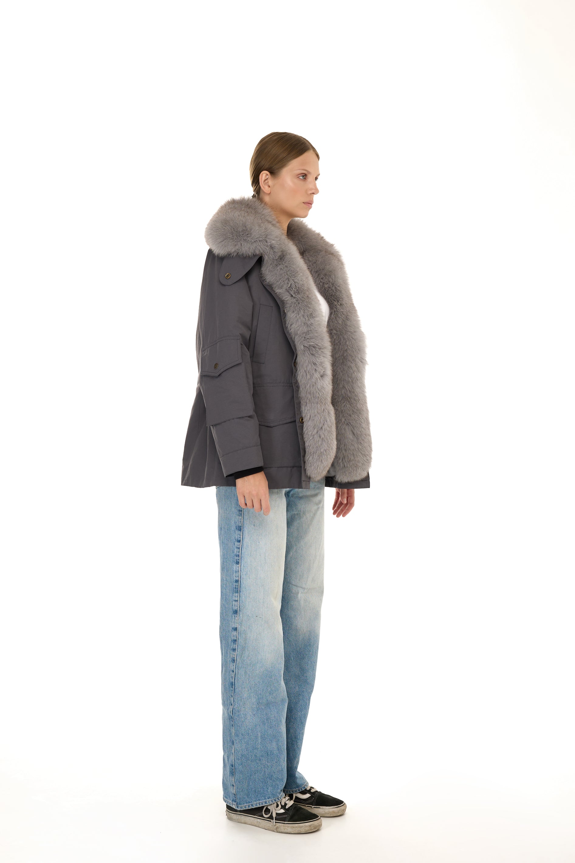 Inside, the lining in real Rex Rabbit fur guarantees exceptional warmth and softness. To embellish the garment, inserts in fox positioned on the internal fronts and on the back neck, for a refined and unexpected touch that enhances the entire design.