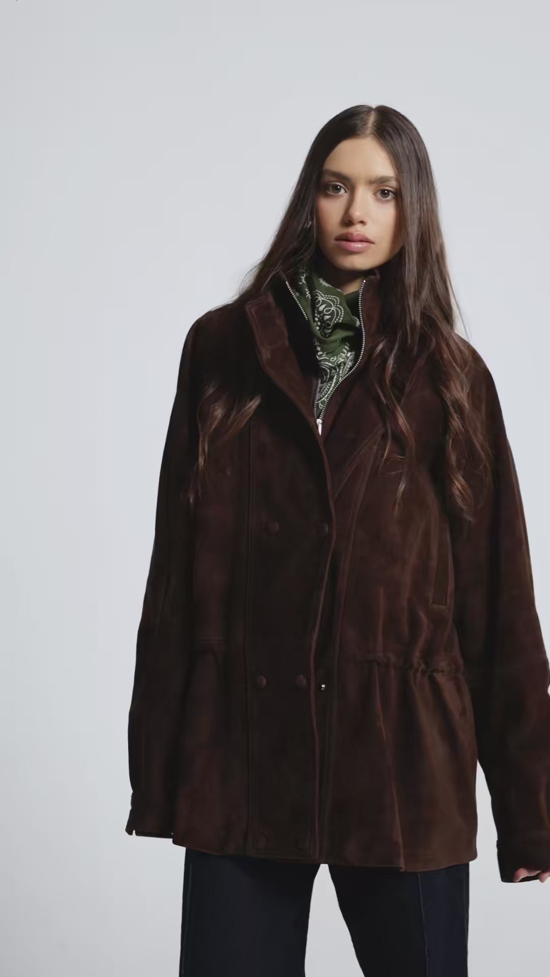 This double-breasted jacket in premium sand-colored suede interprets spring with discretion and character.