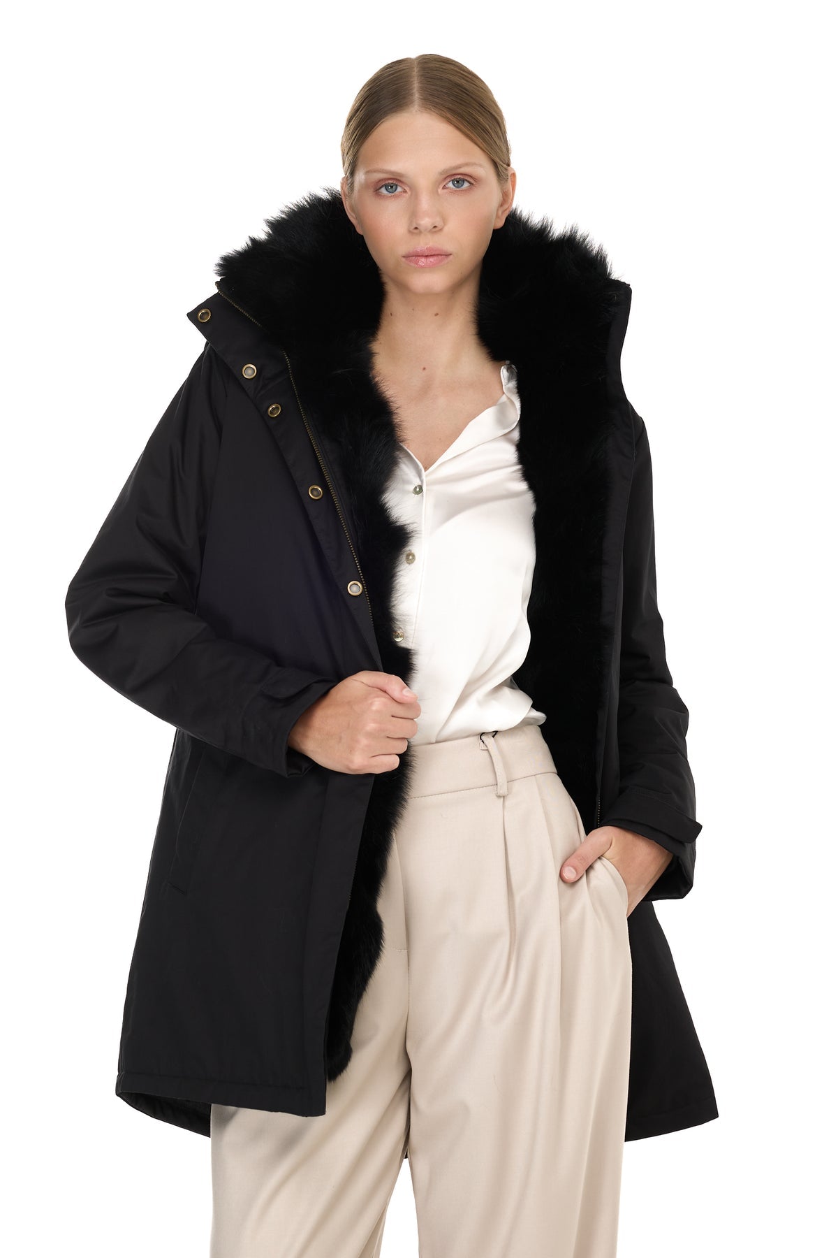 Elegant BLACK Parka with High Collar and Removable Fur Vest