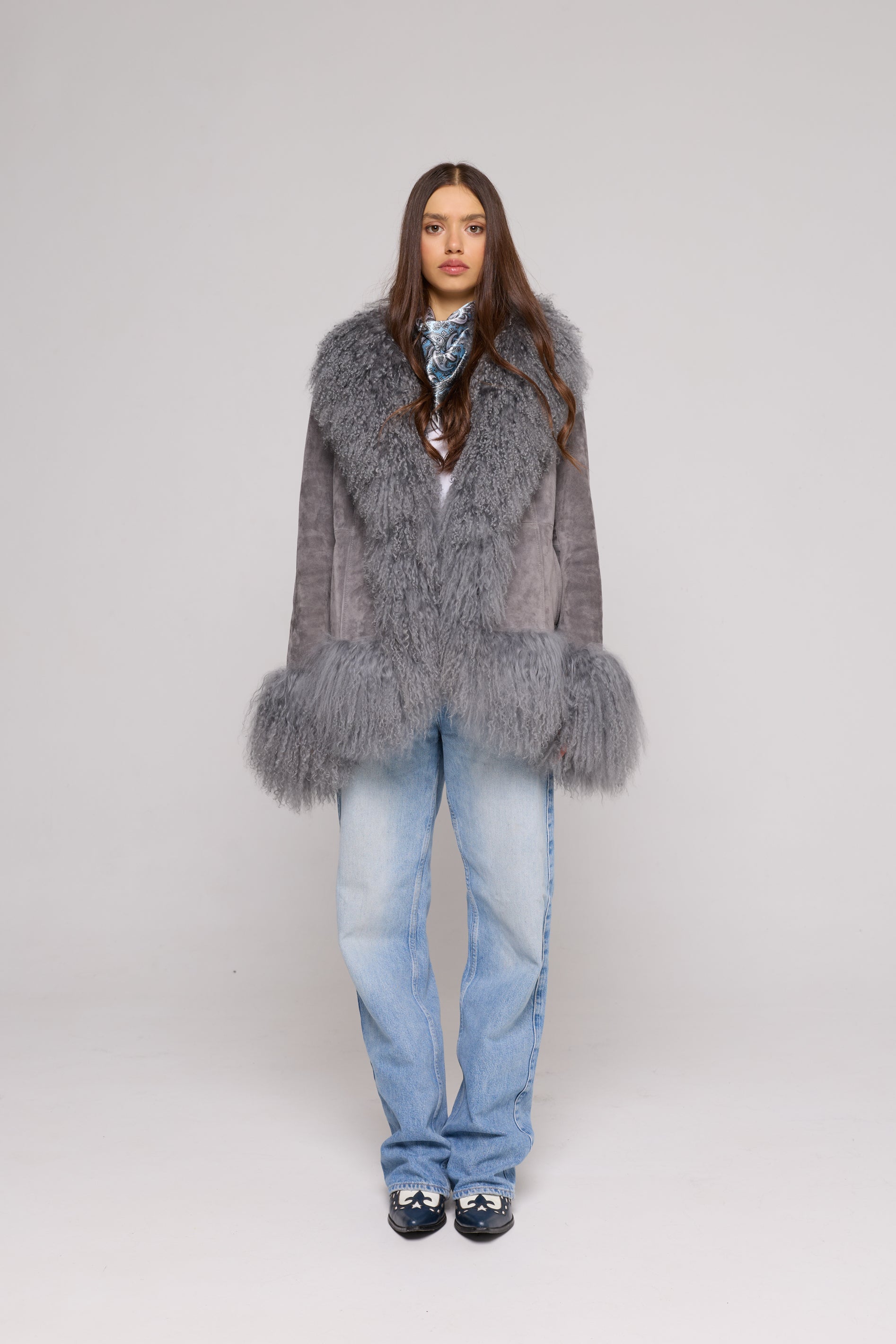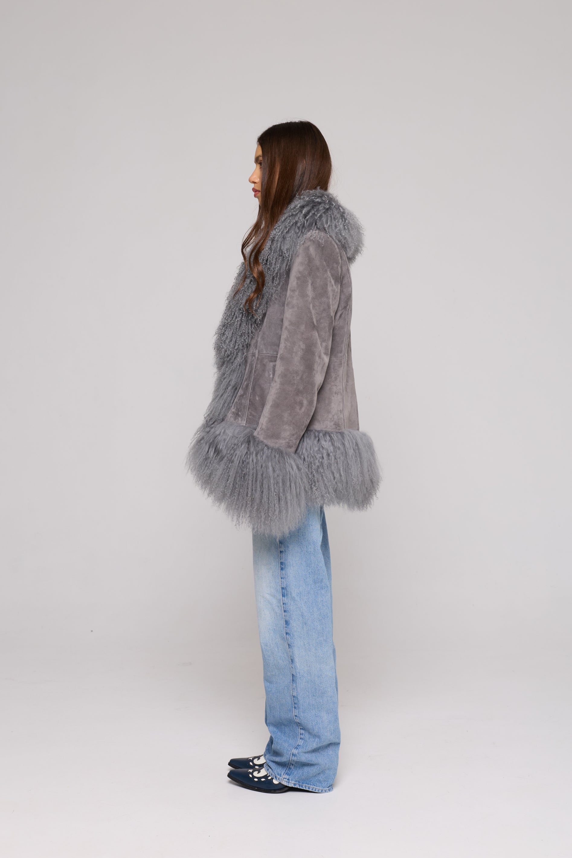 This suede jacket and Mongolia is the perfect blend of luxury and versatility. The soft shearling collar and external pockets make it suitable for any occasion, from elegant suits to casual jeans.