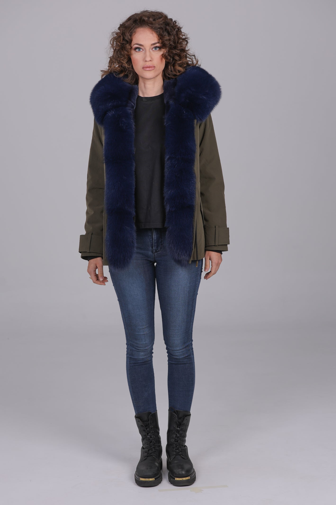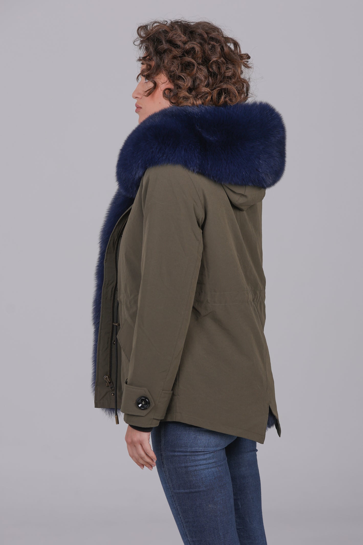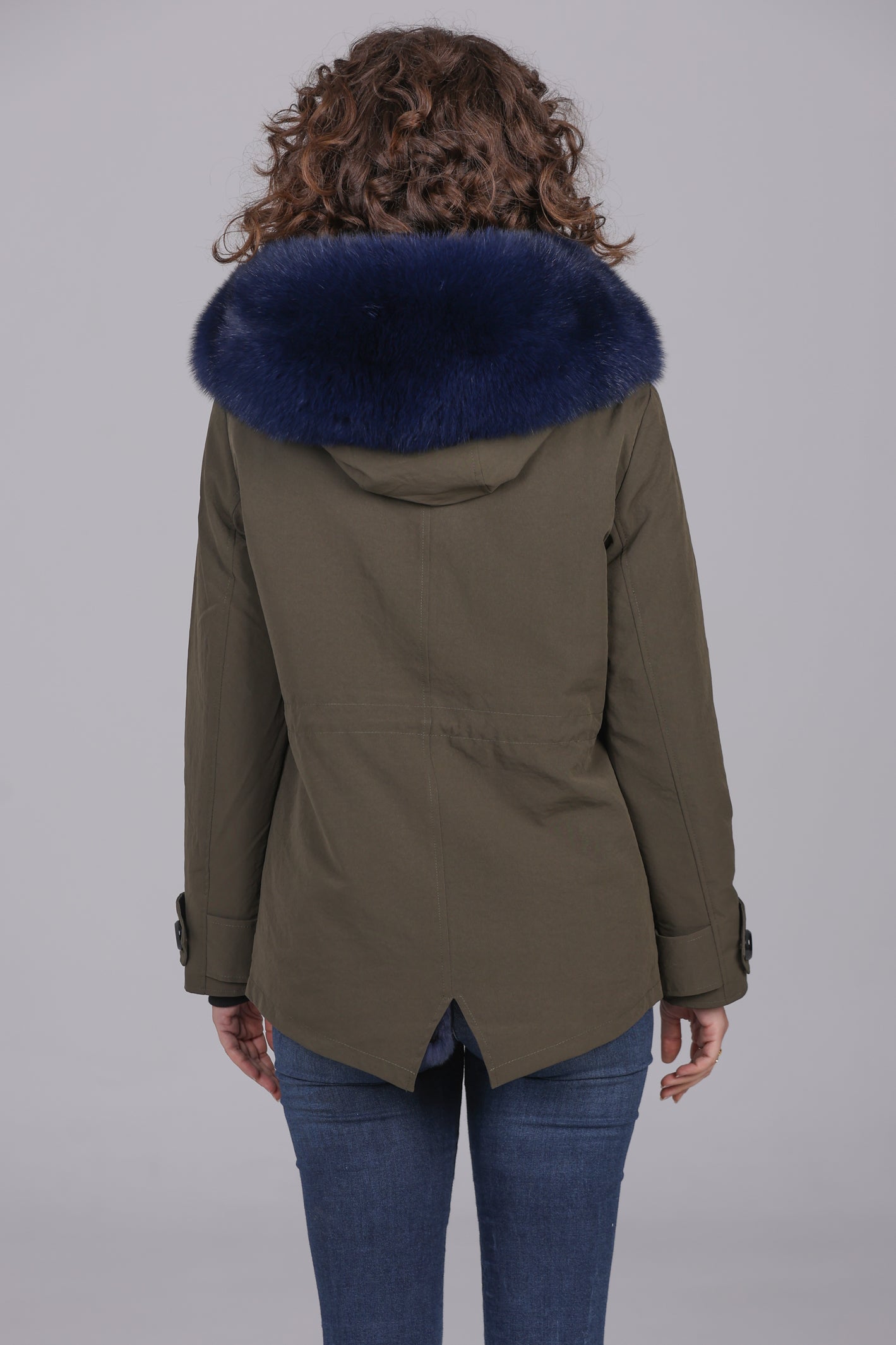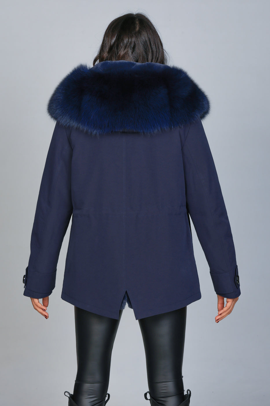 Parka in Short Blue Waterproof Technical Cotton