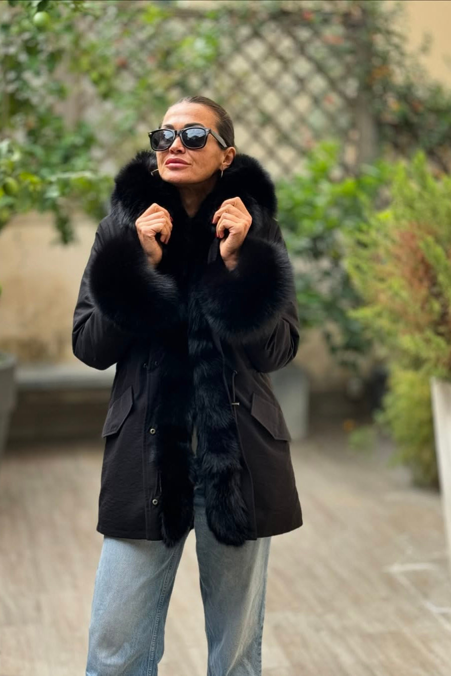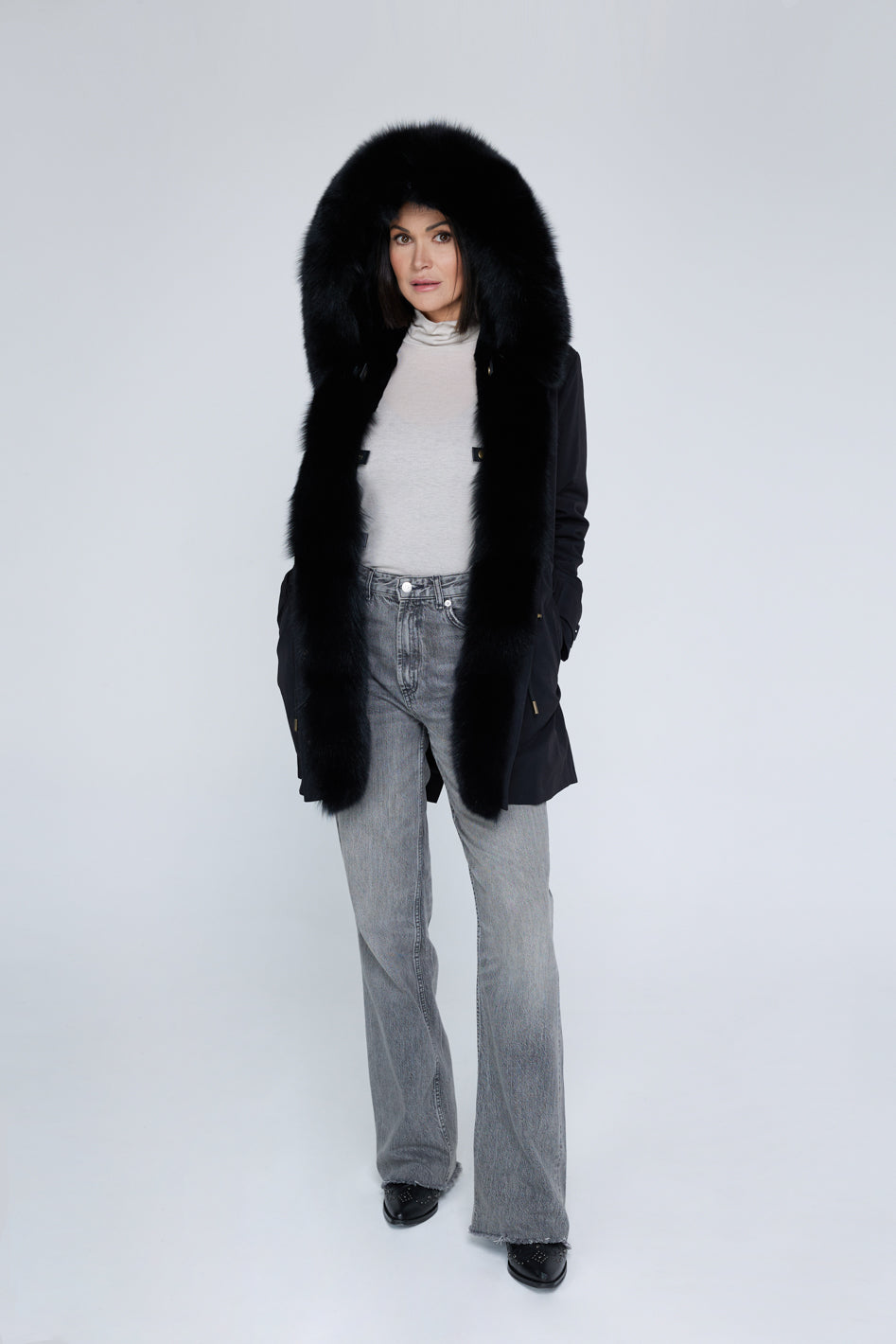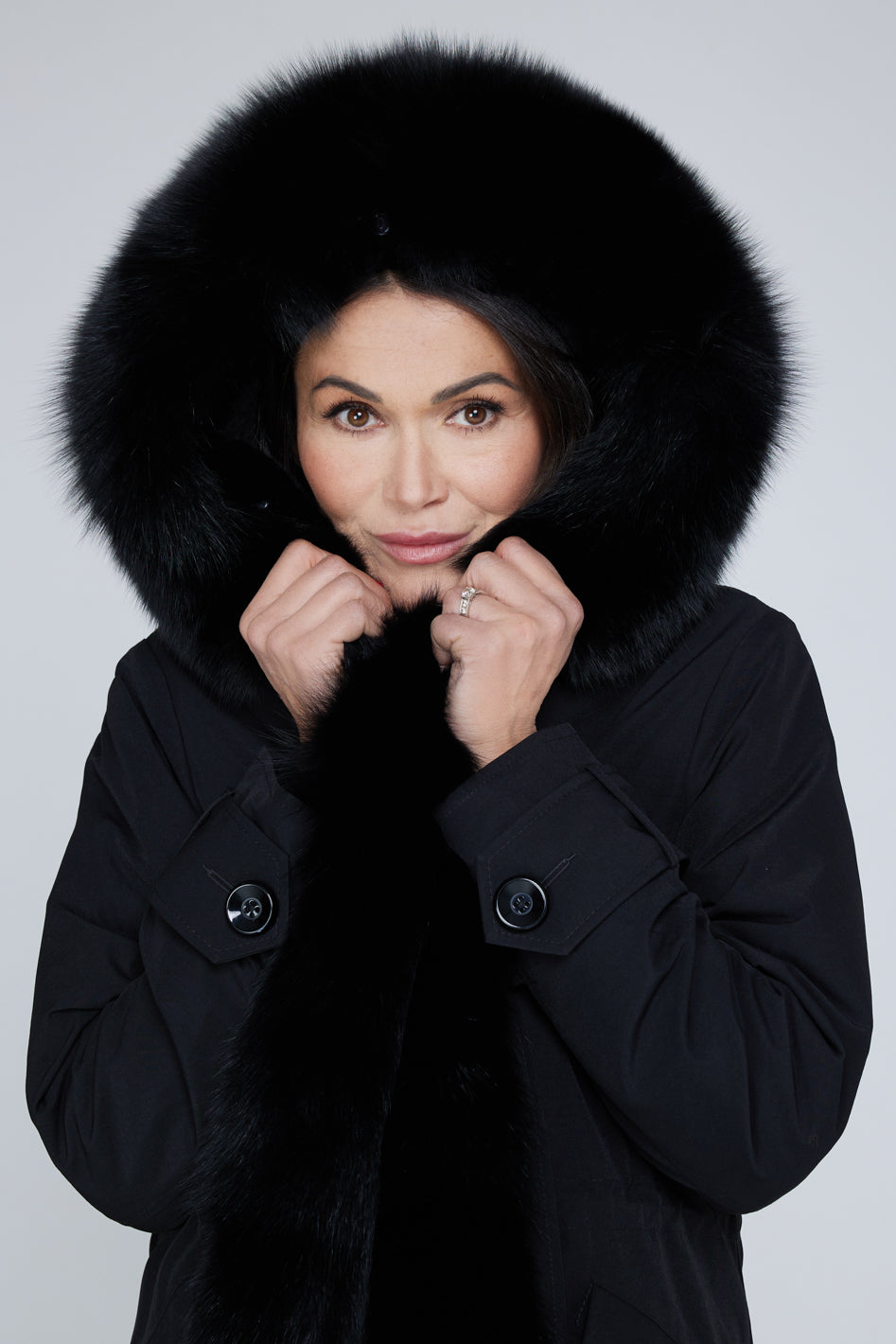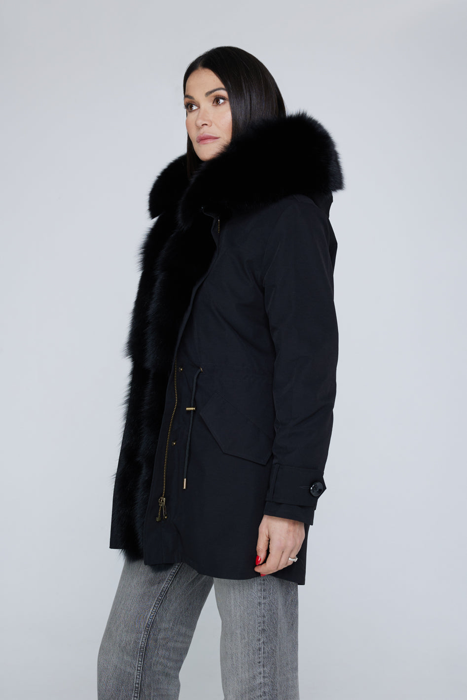 Long black waterproof technical cotton parka