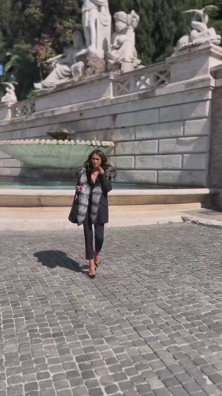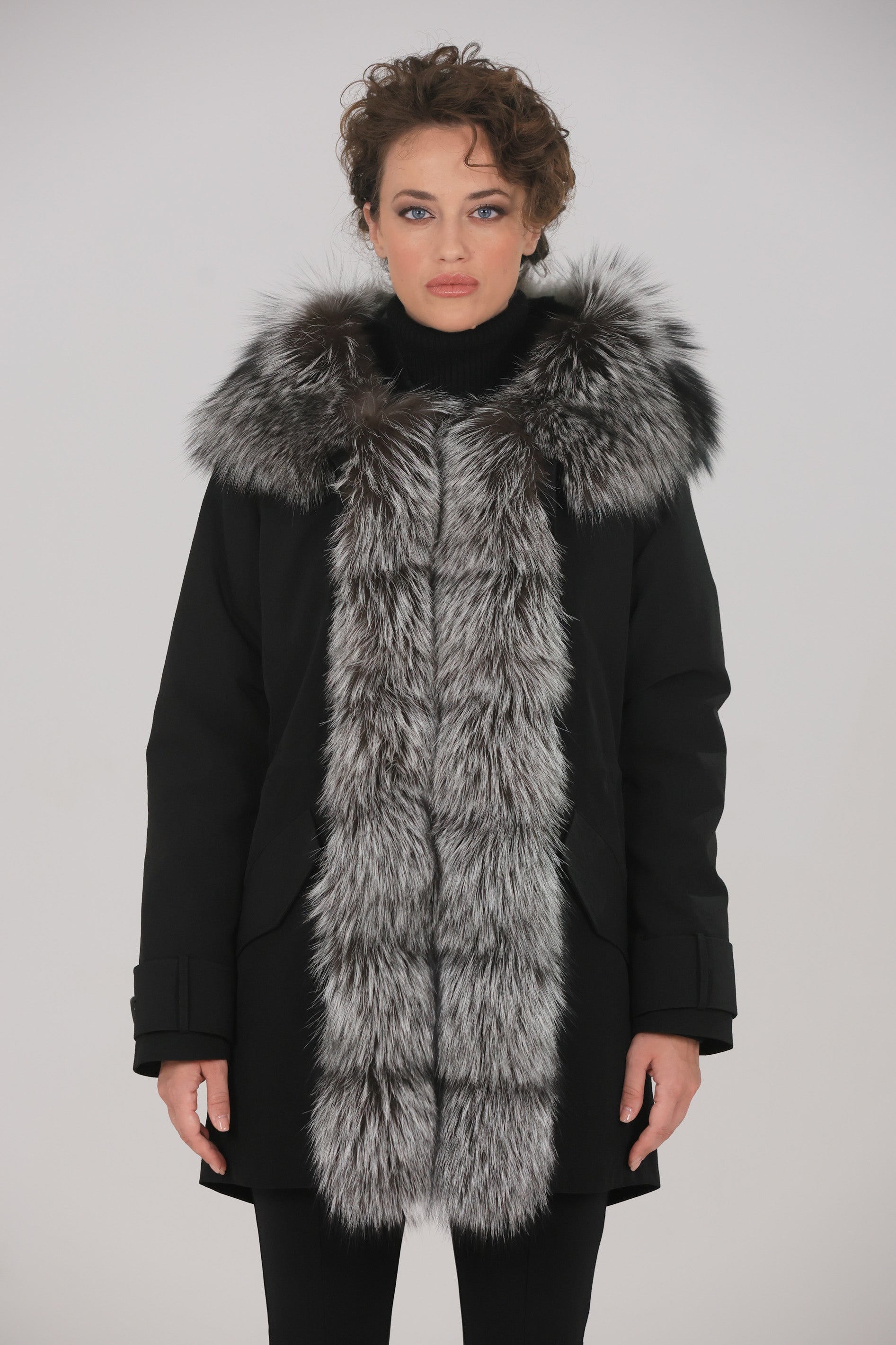 Technical cotton parka raincoat with collar and frontals in real fox fur, rex rabbit lining