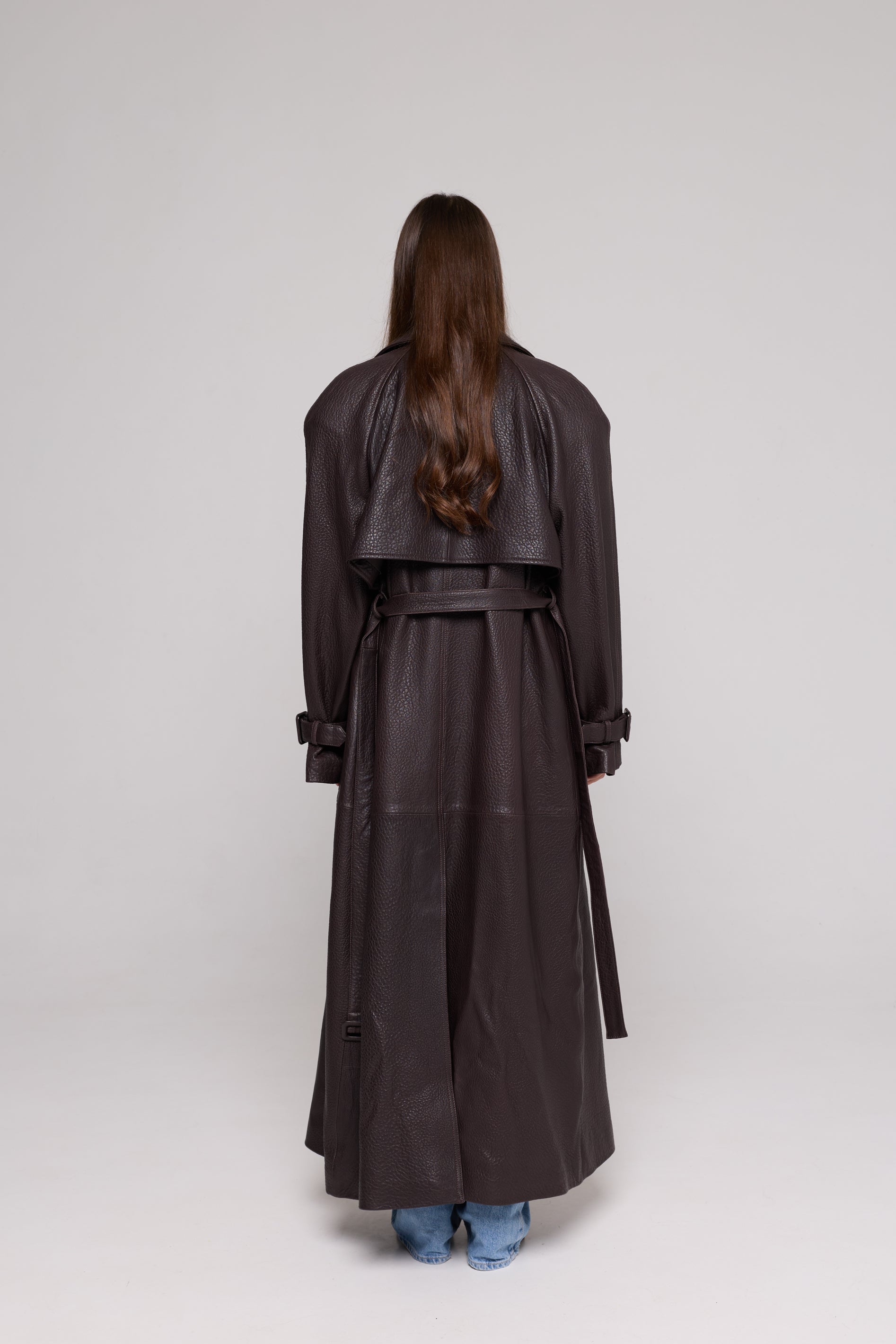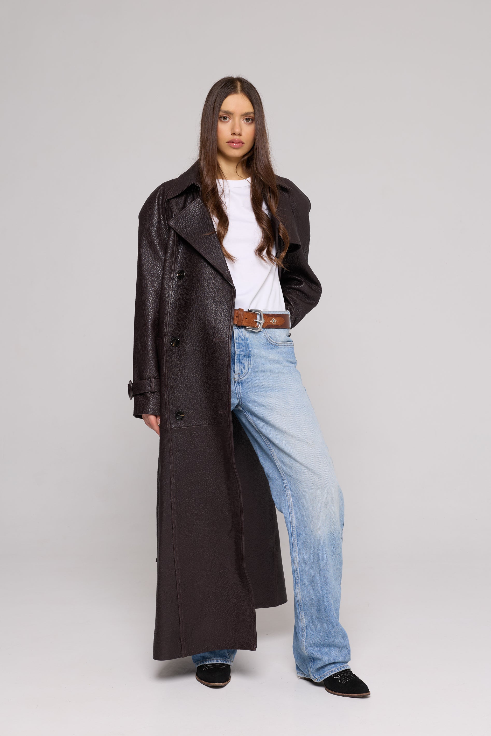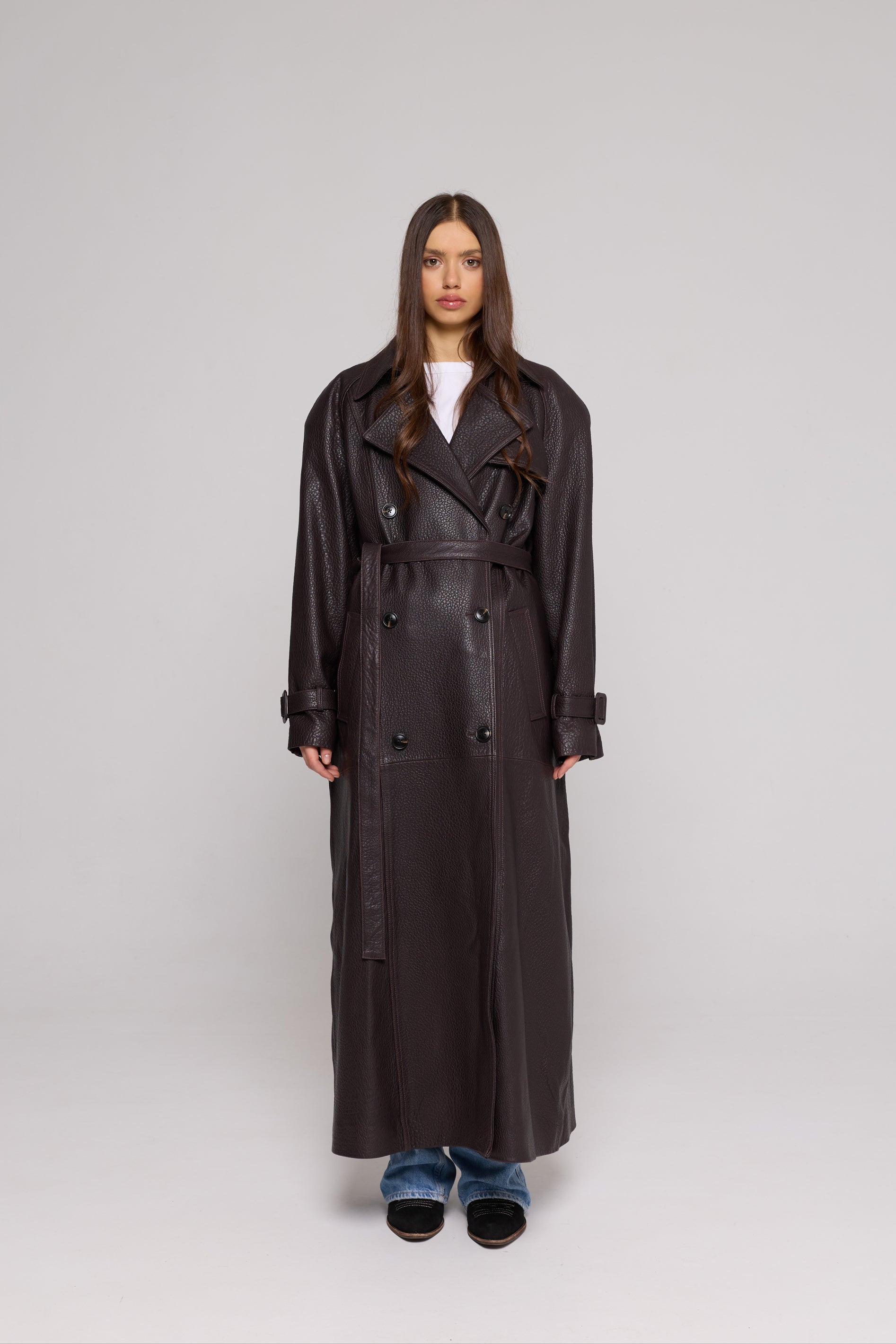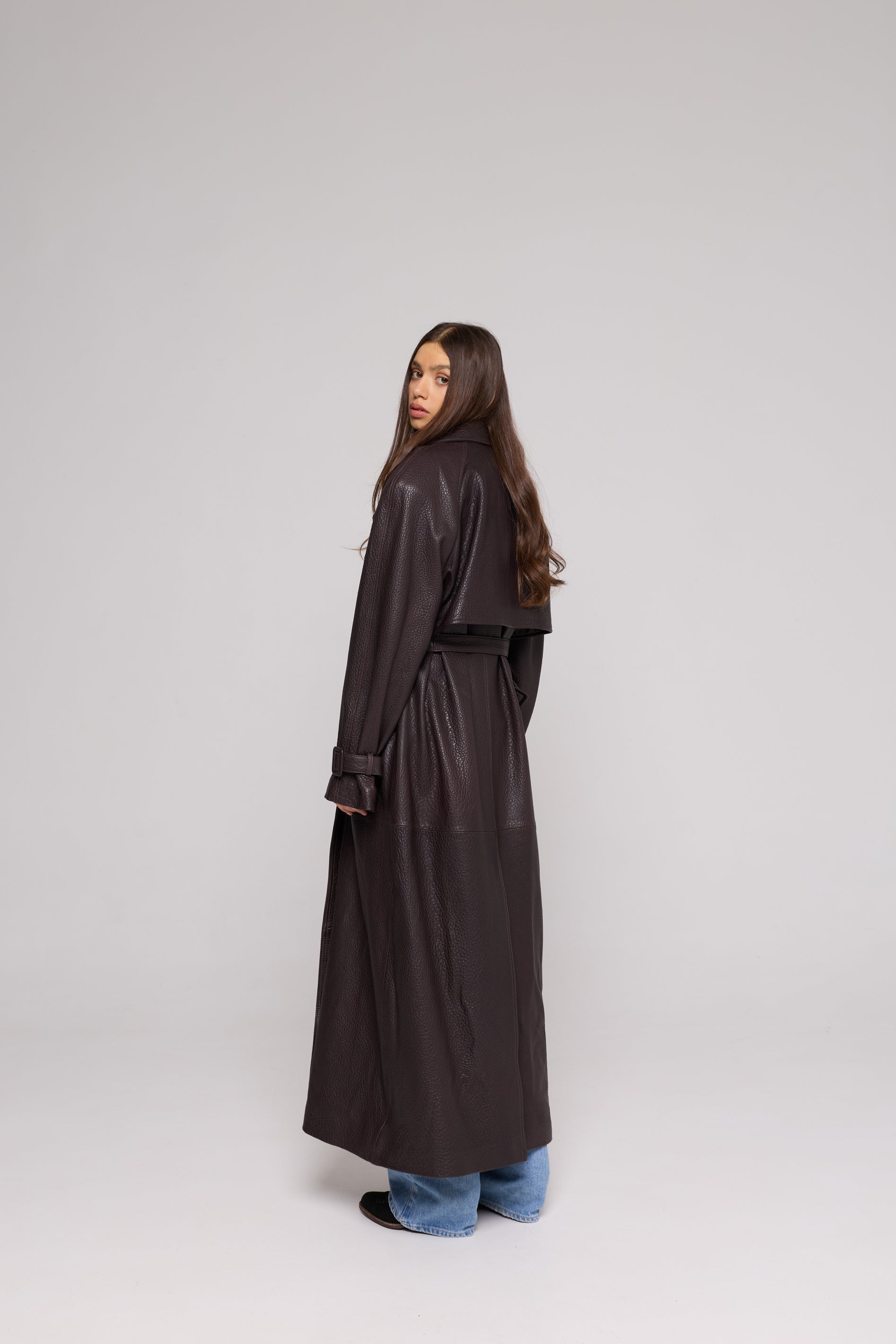 Gabardina de Piel Auténtica Martillada – Marrón Oscuro