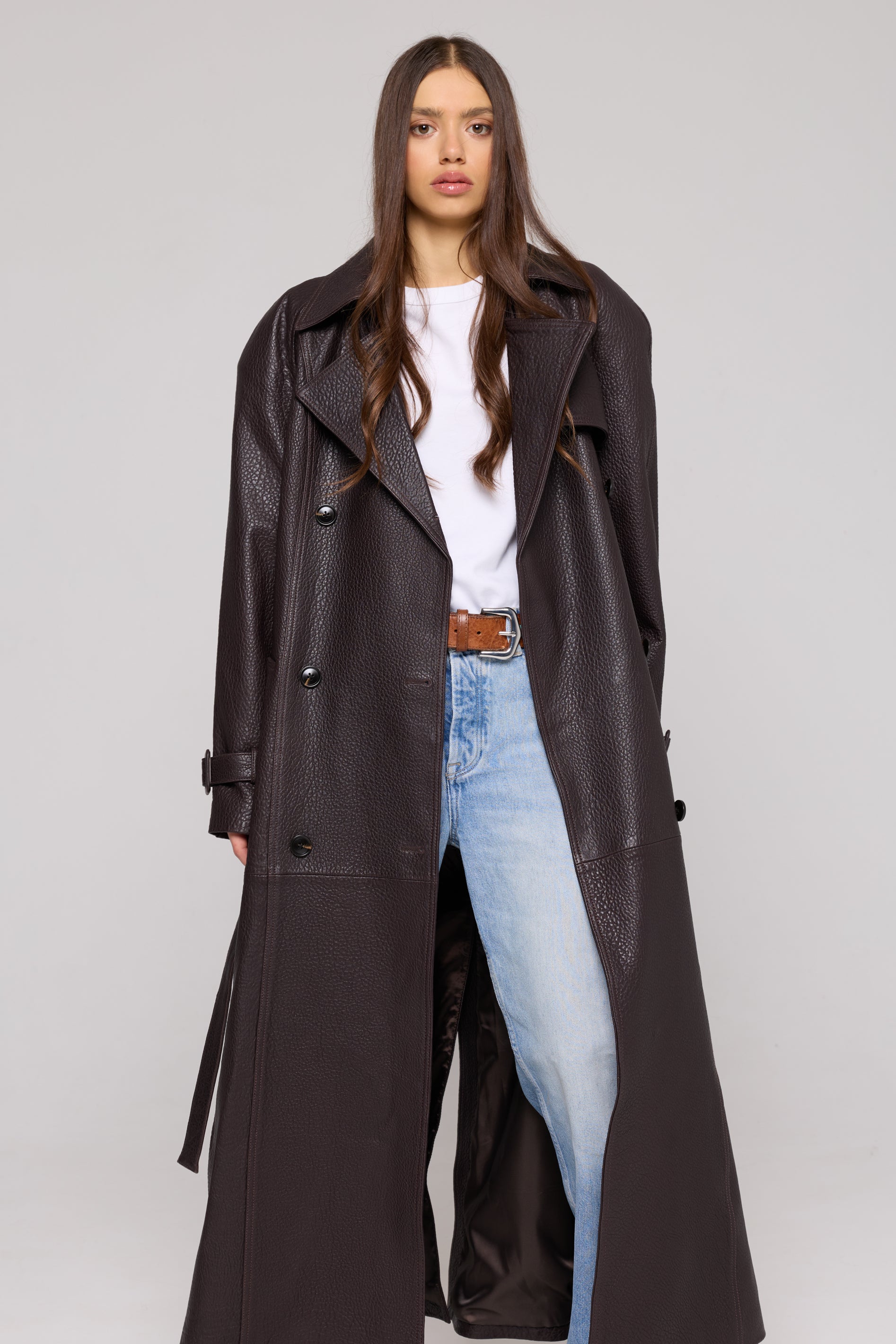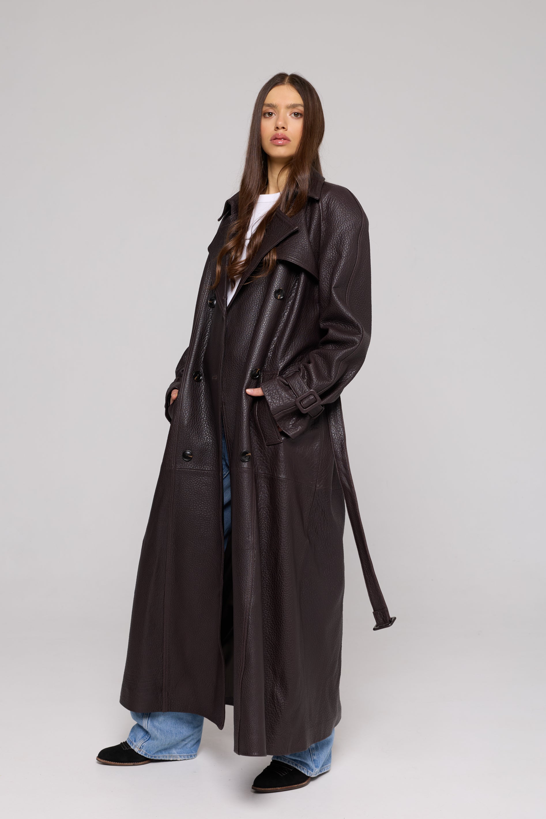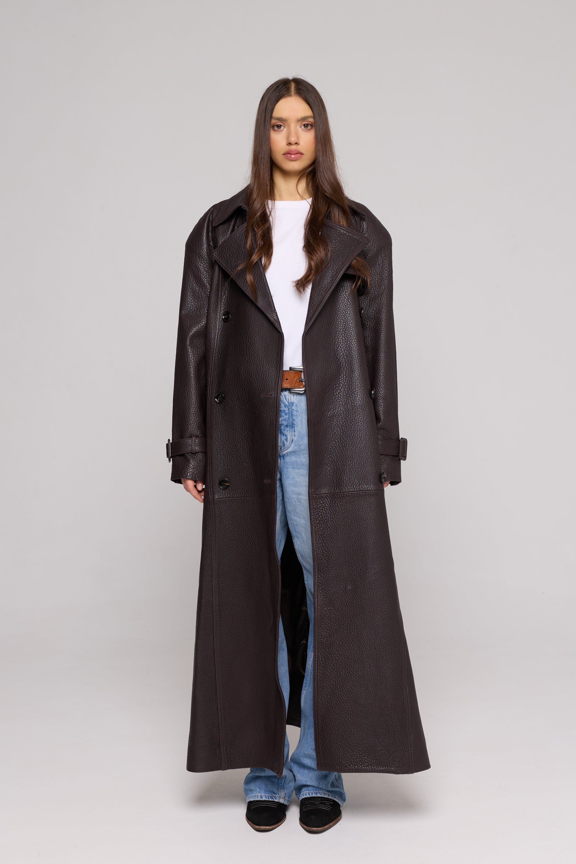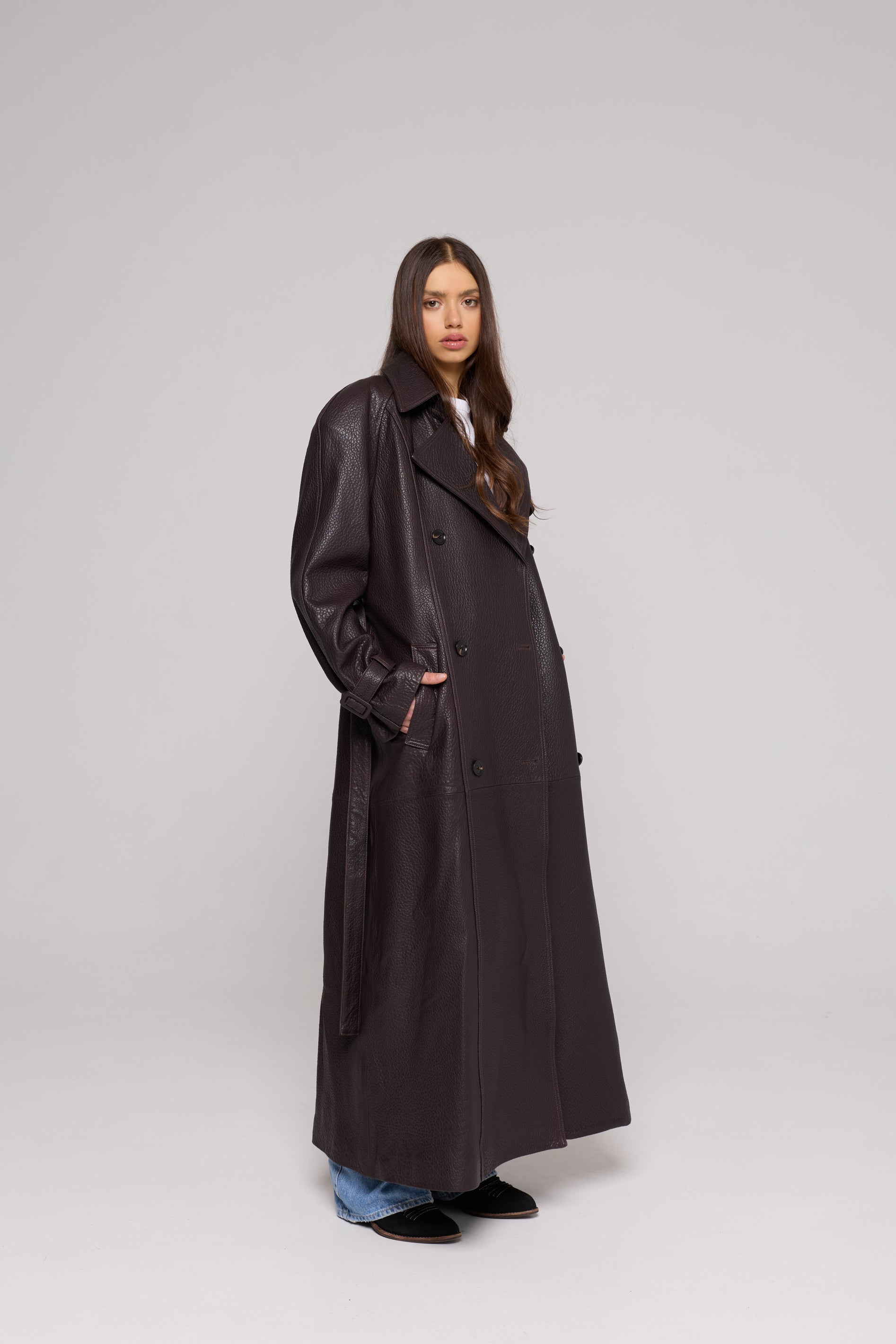 Gabardina de Piel Auténtica Martillada – Marrón Oscuro