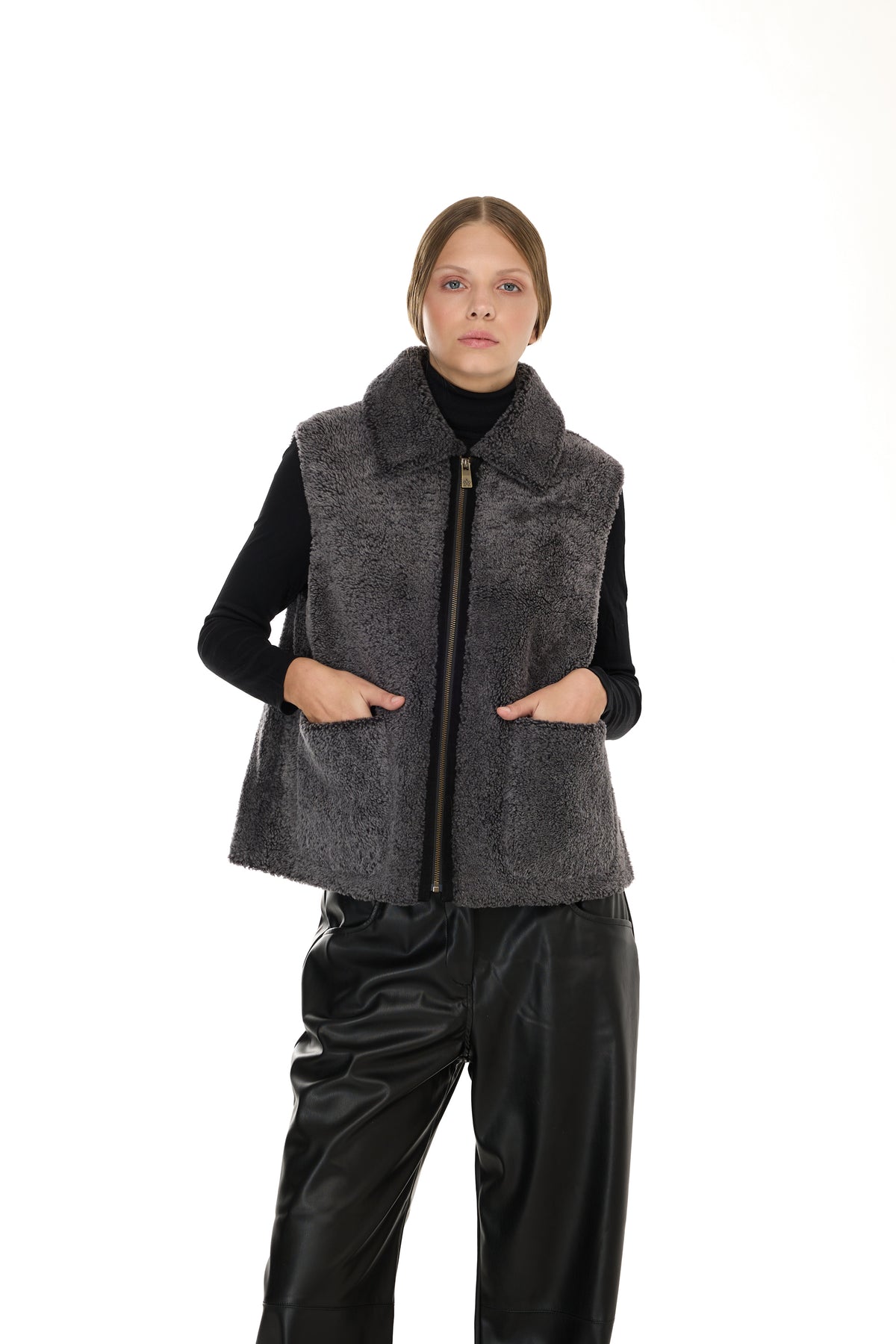 Gracias a su línea equilibrada y holgada, el chaleco se adapta elegantemente a diferentes tipos de cuerpo: