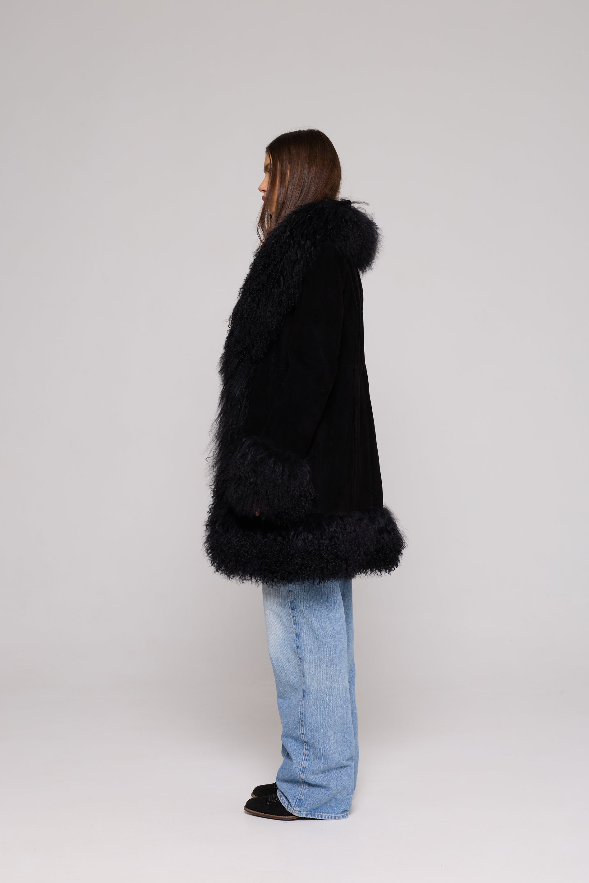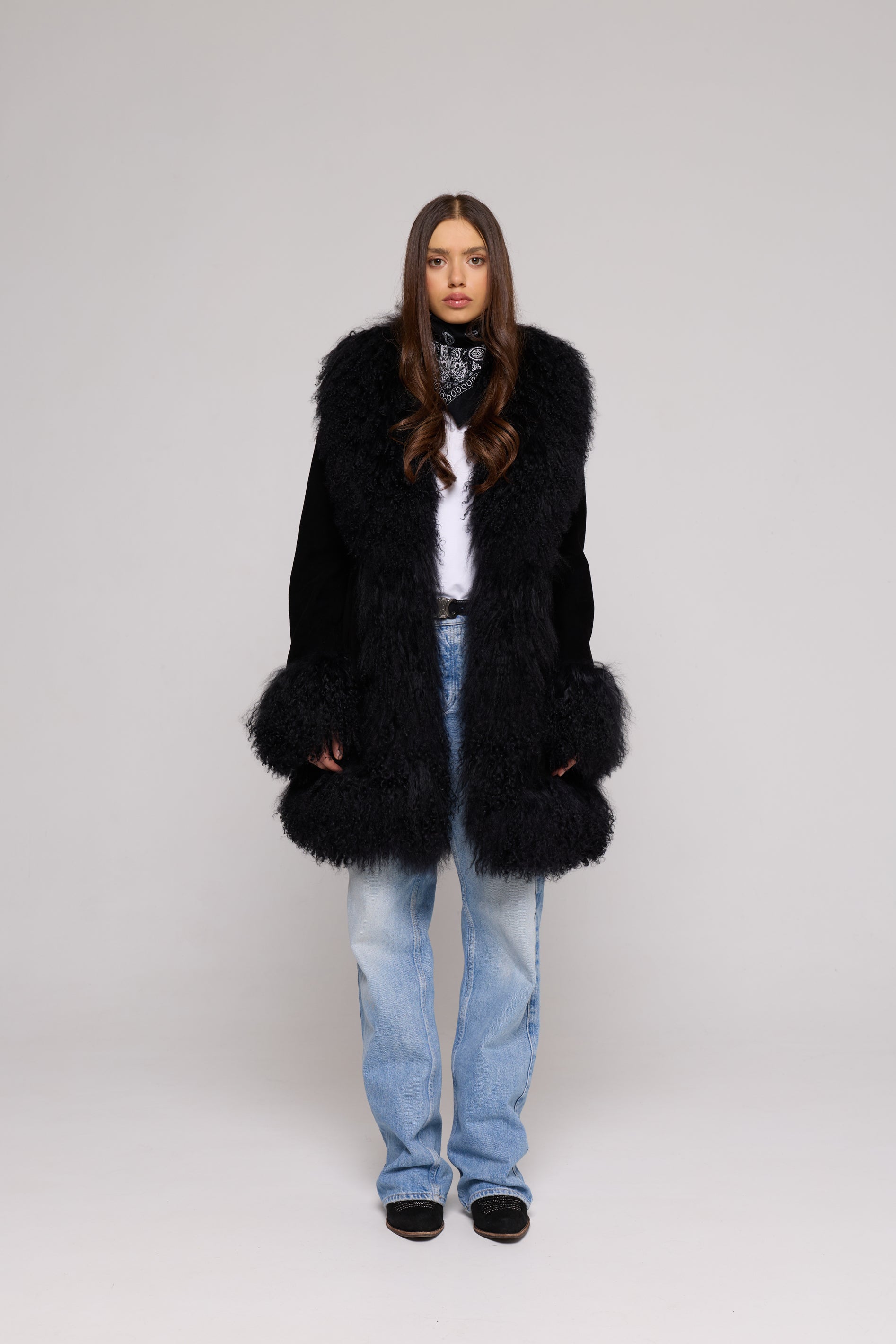 Cette veste en daim et Mongolia allie à la perfection luxe et polyvalence. Son col en peau lainée douce et ses poches extérieures la rendent adaptée à toutes les occasions, des costumes élégants aux jeans décontractés.