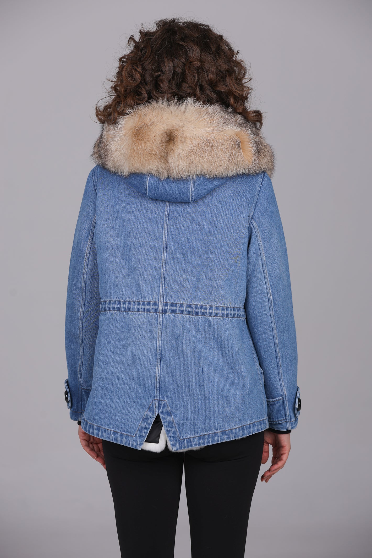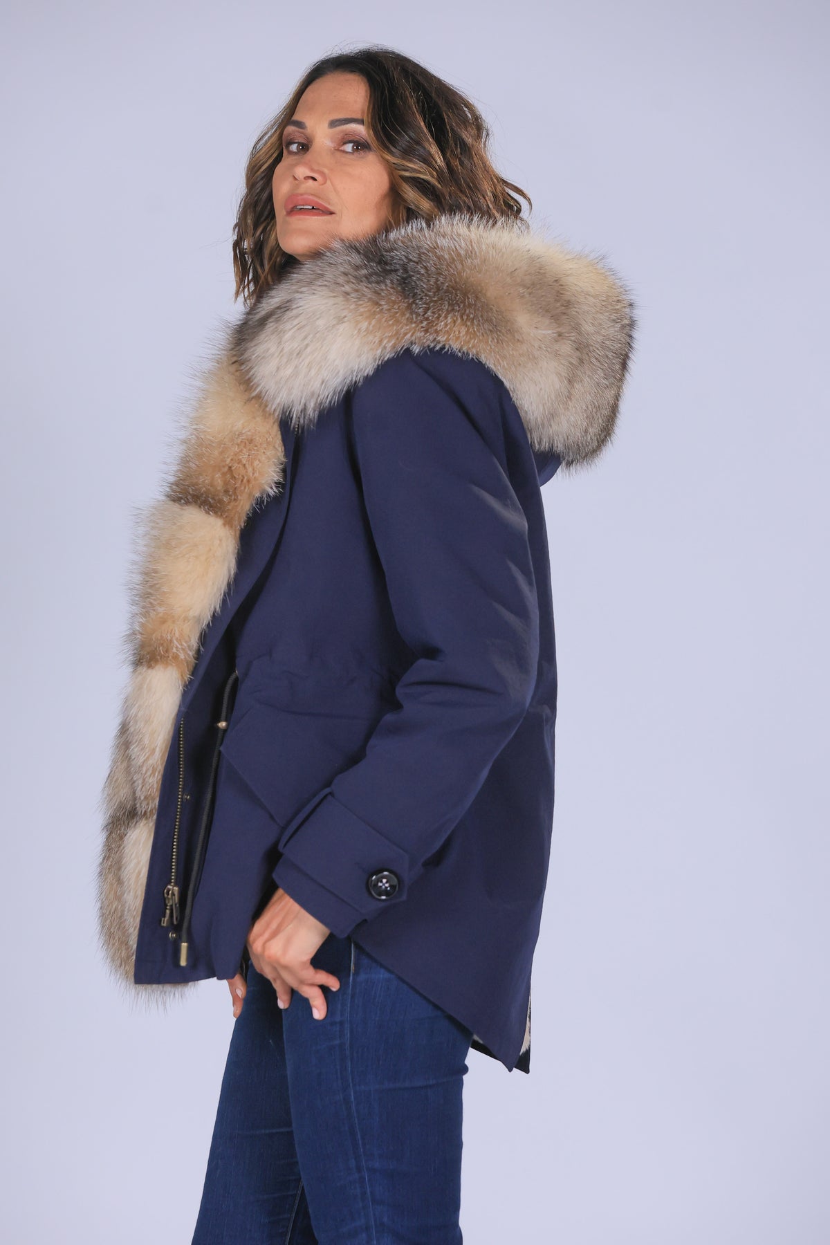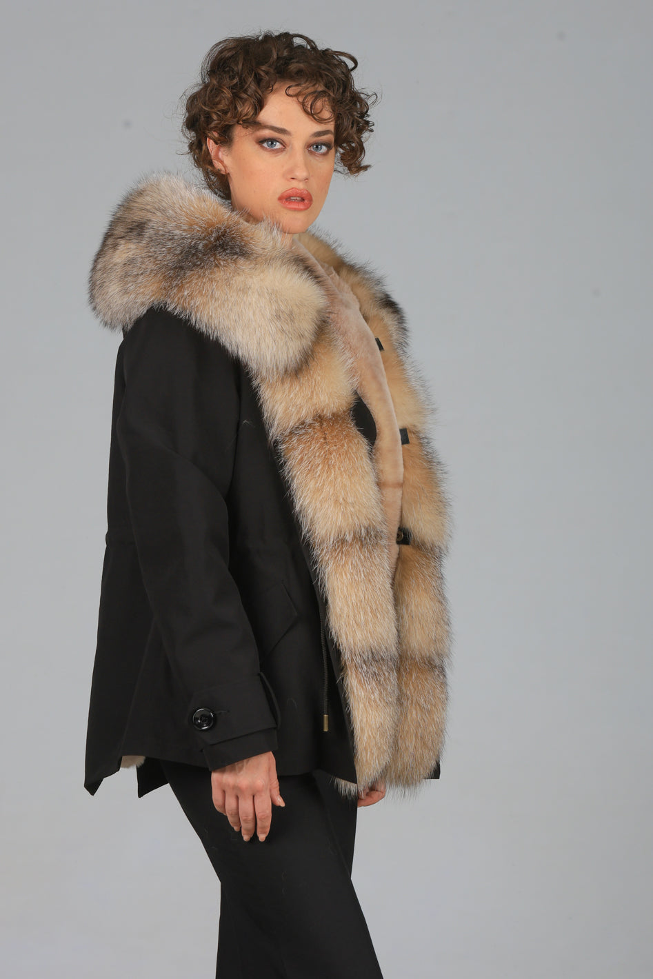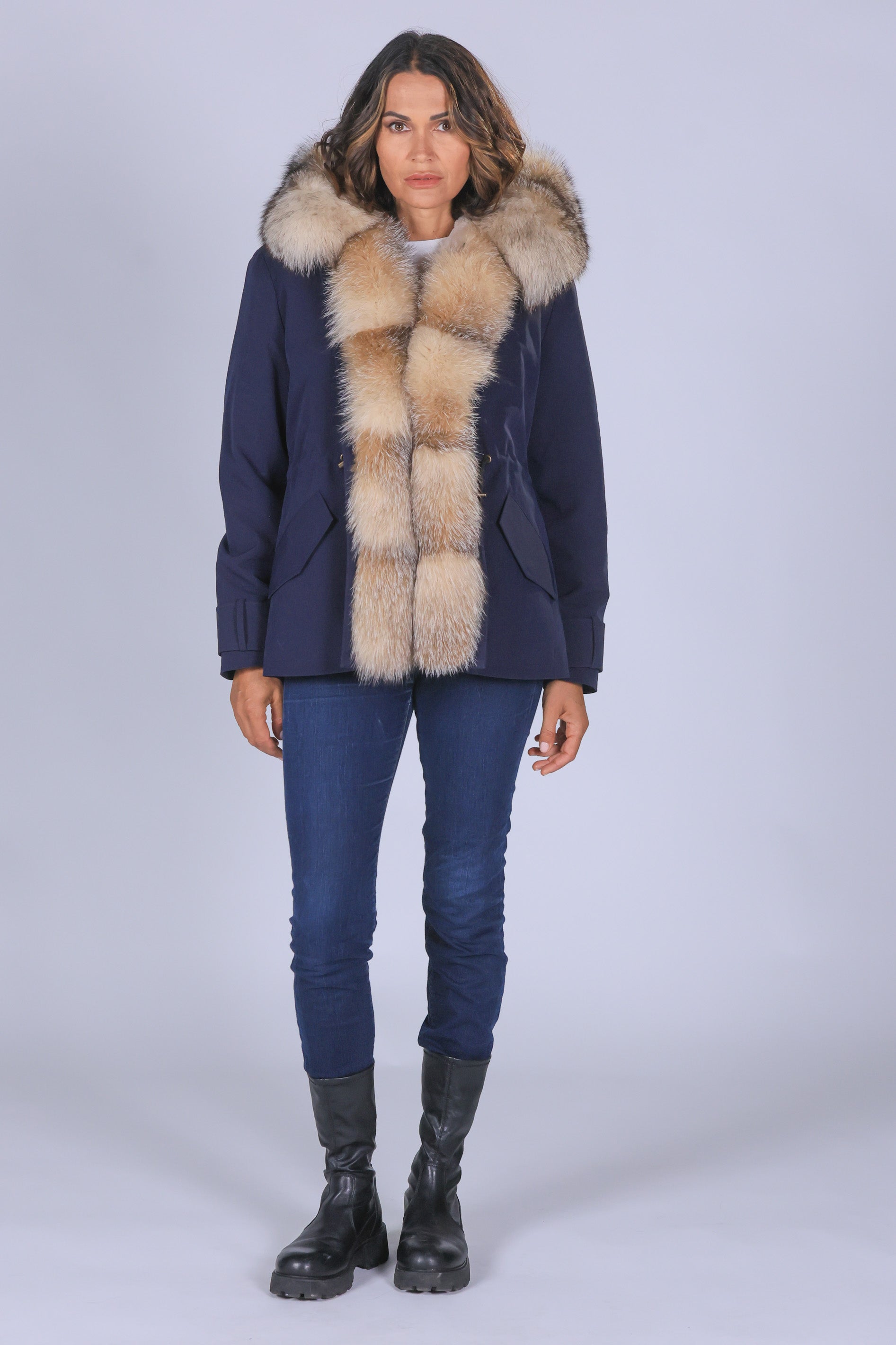 Parka in cotone tecnico impermeabile con collo e frontali in vera pelliccia di volpe ,fodera interna in LUXURY REX RABBIT